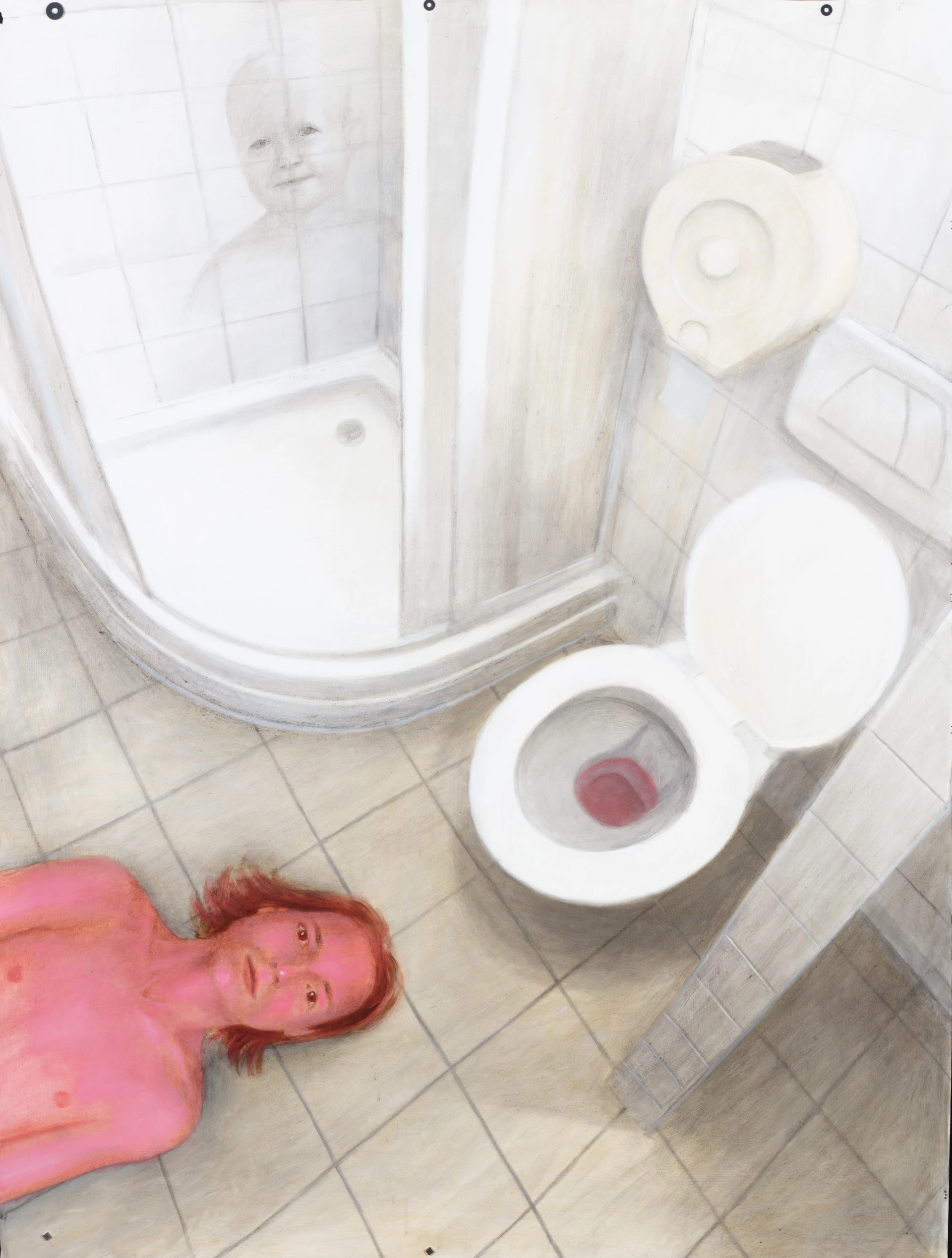 Démon žije na koleji, Olej na papíře, 200x150cm, 2020