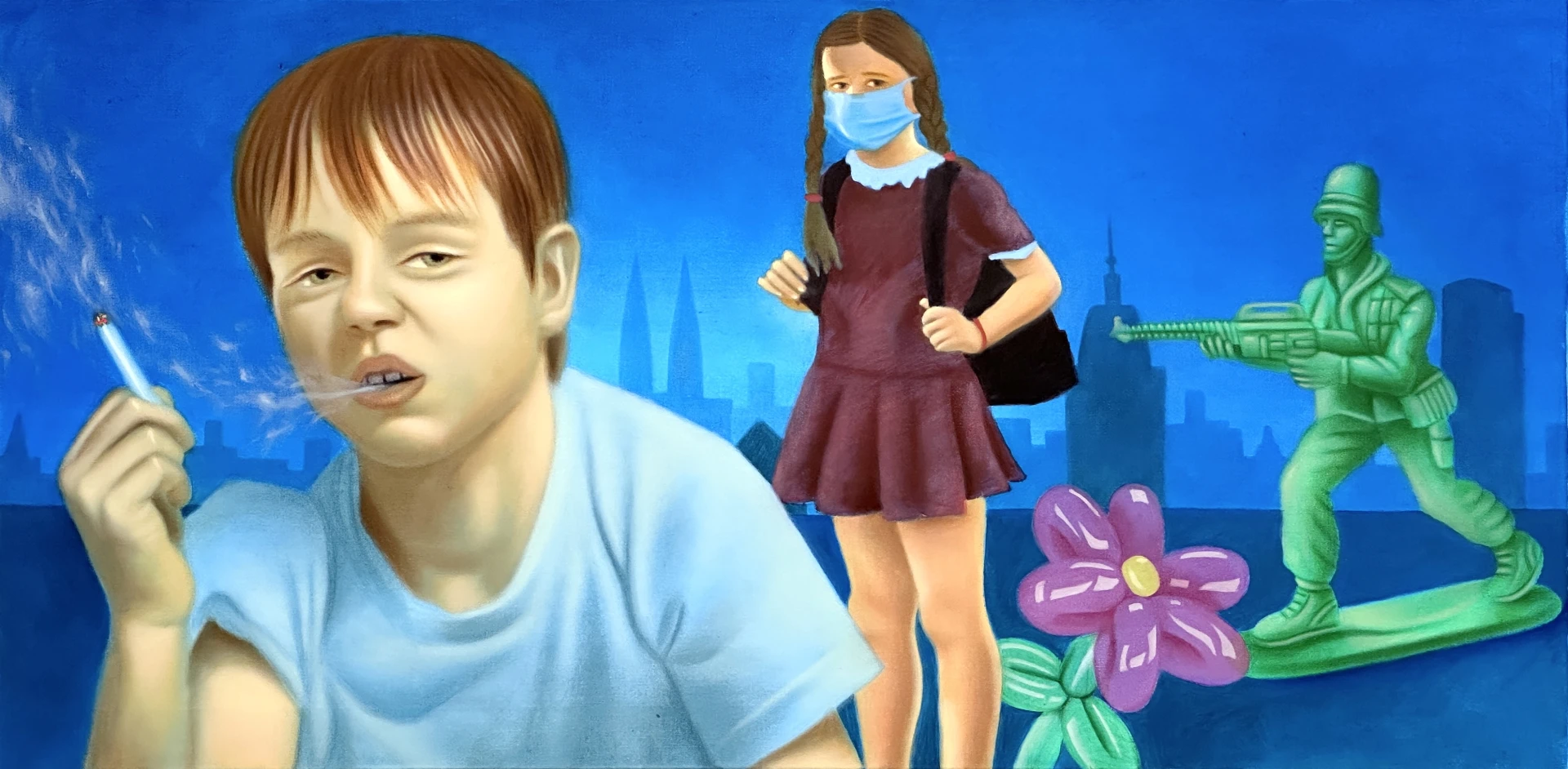 Město duchů (prodáno), Olej na plátně 100x50cm